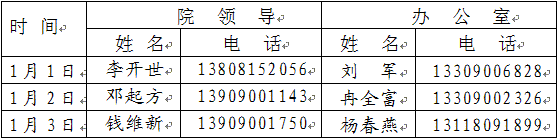 请各部门将值班安排于12月29日前报院办公室。(书面报送或发电子邮件至office@suse.edu.cn)