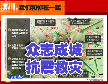 灾情震惊全国,胡锦涛总书记立即作出重要指示,要求尽快抢救伤员,保证灾区人民生命安全。温家宝总理已紧急赶赴灾区,亲临第一线指导救灾工作。而人民的军队也奔赴灾区开展抢救工作,全国各地各级政府,亿万华夏儿女都纷纷行动起来,自发捐钱捐物,通过各种途径支援灾区。