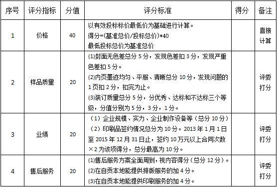 《电子资源利用指南》等排版印刷业务招标综合评分标准