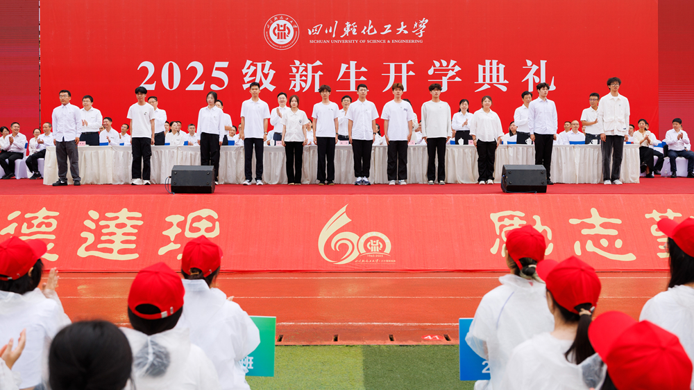 9月8日上午8时30分,雨后初霁的四川轻化工大学李白河校区清新明朗,A区田径运动场上早已整齐排列着一个个色彩鲜明的方阵——新生们头戴蓝、黄、白、红四色帽子,犹如一幅斑斓青春的画卷,静待一场庄严仪式的开启。2025级新生开学典礼在此隆重举行。自贡市副市长陈张铭、校党委书记张力、校长曾英等校领导、各职能部门与学院负责人、教师代表及全体新生共同出席。典礼由学校党委常委、副校长吴亚东主持。