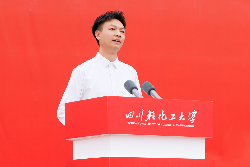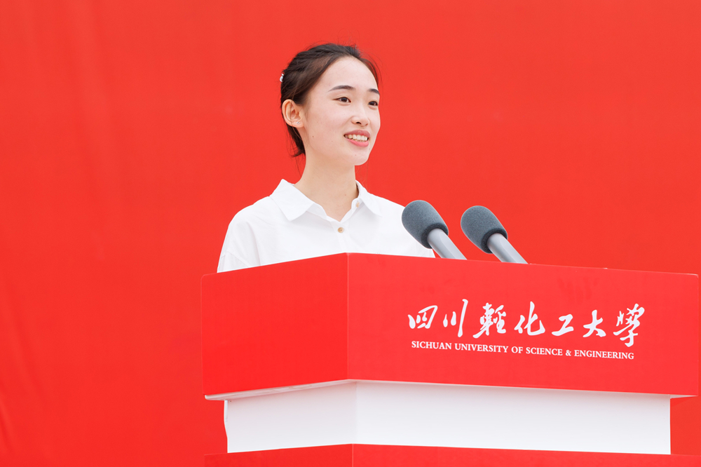 自贡市副市长陈张铭在致辞中介绍了“千年盐都”“中国灯城”自贡的独特文化与发展机遇,鼓励学子学成扎根、服务地方。教师代表曾涛以“为师为友、共赴山海”表达了对同学们的期许与承诺。校友代表何凡结合创业经历,寄语新生“学会接受、懂得去爱”,在挫折中砥砺成长。在校生代表肖林以“初心·细节·体验”分享成长心得;新生代表梁欣悦则表示将恪守“厚德达理、励志勤工”的校训,勇攀学术高峰。