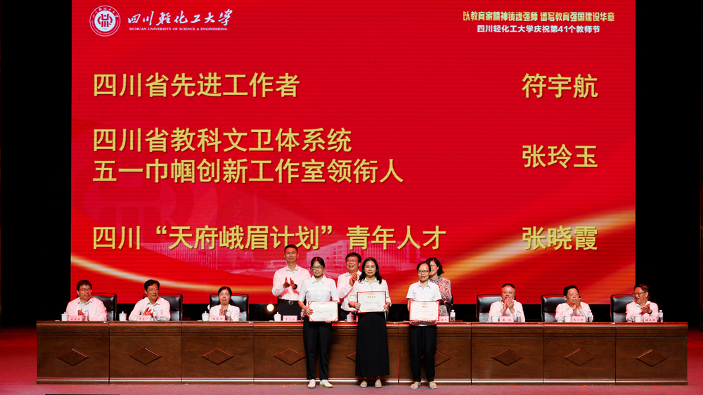 校党委书记张力在讲话中向全校教职员工致以节日问候,向社会各界长期关心支持学校发展表示感谢,并回顾了一年来的办学成就。他指出,过去一年,学校坚持以习近平新时代中国特色社会主义思想为指导,全面贯彻党的二十大和二十届二中、三中全会精神,弘扬教育家精神,坚决落实省委、省政府决策部署,加强党对学校的全面领导,成功召开了学校第二次党代会,选举产生了新一届学校党委班子,确定了“1257”发展思路,学校进入全面深化改革、推进内涵式高质量发展的新阶段。成绩的取得,凝聚着每一位教职员工的努力和付出,希望全体教职员工再接再厉、团结拼搏。他向全校教师提出三点希望:一是要坚定理想信念,对标先进,做师德高尚的人民教师;二是要提升教学科研能力,服务社会,做求是创新的人民教师;三是要永葆仁爱之心,甘为人梯,做无私奉献的人民教师。学校党委将始终以教师为本,持续推进人事制度改革,稳妥推进岗位聘任,系统开展教师精准化、专业化培训,着力建设一支高素质专业化教师队伍。同时进一步优化办公实验用房、科研仪器设备等资源配置,坚持向一线老师倾斜,努力为老师们创造更好的教学科研条件;优化校区通勤车运行机制、改造教师休息室、提升伙食质量等,切实改善老师们的工作、学习和生活条件;努力让每一位老师工作有条件、干事有平台、发展有空间、付出有回报。他强调,回首过去,我们赓续甲子初心、辛勤耕耘;展望未来,我们勇担育人使命、责任重大。学校将始终坚持以习近平新时代中国特色社会主义思想为指导,全面贯彻党的教育方针,落实好学校第二次党代会精神,推进学校内涵式高质量发展再上新台阶,为教育强国、强省建设贡献川轻化力量。