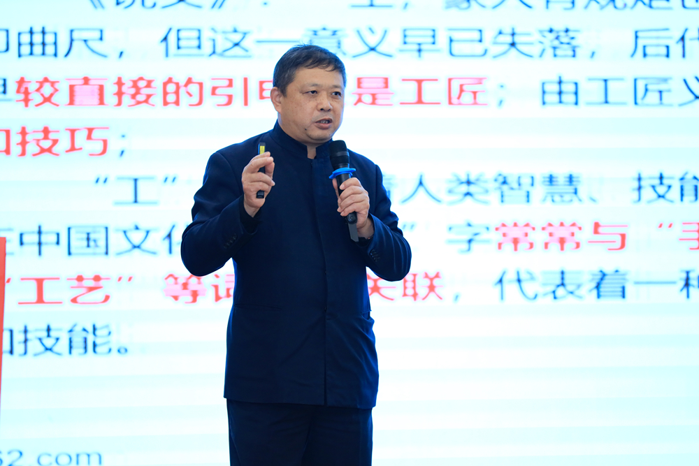 活动邀请到四位行业劳模工匠作报告。全国五一劳动奖章获得者、2021年大国工匠年度人物、首届轻工大国工匠刘更生,作为多项荣誉获得者,展现了“精益求精、追求极致”的工匠本色;全国技术能手、第二届轻工大国工匠、中国玉石雕刻大师侯晓峰,诠释了“守正创新”的时代内涵;新郎希努尔集团股份有限公司制版师、高级技师、全国劳动模范马耀霞,分享了从基层成长为全国劳动模范的励志历程;泸州老窖股份有限公司监事会主席、中国酒业大国工匠、第二届轻工大国工匠、中国白酒工艺大师杨平,让大家领略到中国传统酒文化的博大精深。