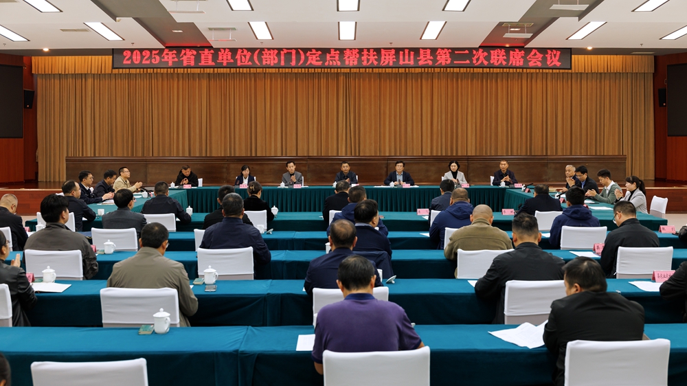10月29日,2025年省直单位(部门)定点帮扶屏山县第二次联席会议在屏山举行。省政府副秘书长、省机关事务管理局局长谢民,我校党委书记张力,中国三峡集团四川分公司纪委书记刘凤祁等出席会议。会议由宜宾市人大常委会副主任刘朝平主持。
