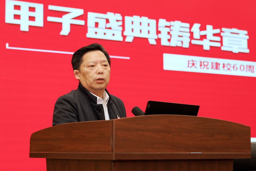 曾英在主持中指出,本次校庆以“赓续六十载家国情怀,勇担新时代教育使命”为主题,成功举办了庆祝大会、文艺晚会、学术研讨会、校友会成立大会、交流座谈会、劳模工匠进校园、书画摄影展等系列活动,全面展现了学校一甲子的奋斗历程与办学成就,有力汇聚了社会各方资源,全面激发了师生爱校兴校的情怀,为实现特色鲜明、优势突出的高水平综合性大学奋斗目标奠定了坚实基础。要深刻把握校庆承载的时代内涵,从中汲取力量,使其转化为推动学校内涵式高质量发展的强大动力,做到坚定发展自信、深化改革创新、坚持开放办学、弘扬大学精神。