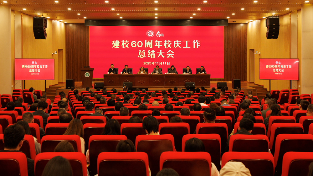 11月11日下午,我校在李白河校区学术报告厅举行建校60周年校庆工作总结大会。全体校领导、校庆专班成员、中层干部及师生代表齐聚一堂,共同回顾校庆辉煌历程,总结宝贵经验,凝聚奋进共识。会议由学校党委副书记、校长曾英主持。