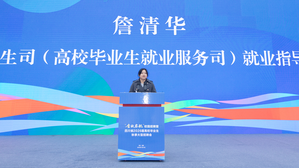 启动仪式上,我校党委副书记、校长曾英代表承办方致辞。她向与会领导、企业和师生代表表示热烈欢迎,并指出,四川轻化工大学深入贯彻落实习近平总书记对高校毕业生就业工作的重要指示精神,始终将做好毕业生就业工作作为立德树人的重要环节,持续优化学科专业结构,深化产教融合,构建了以“轻工、化工、军工”为特色的六大学科集群,与五粮液等知名企业共建9个现代产业学院,推动“企业出题、共同答题、市场阅卷”的校企合作新常态。她表示,学校将以最优质的服务为用人单位和毕业生搭建高效对接平台,助力学生“迈好走向社会的第一步”。