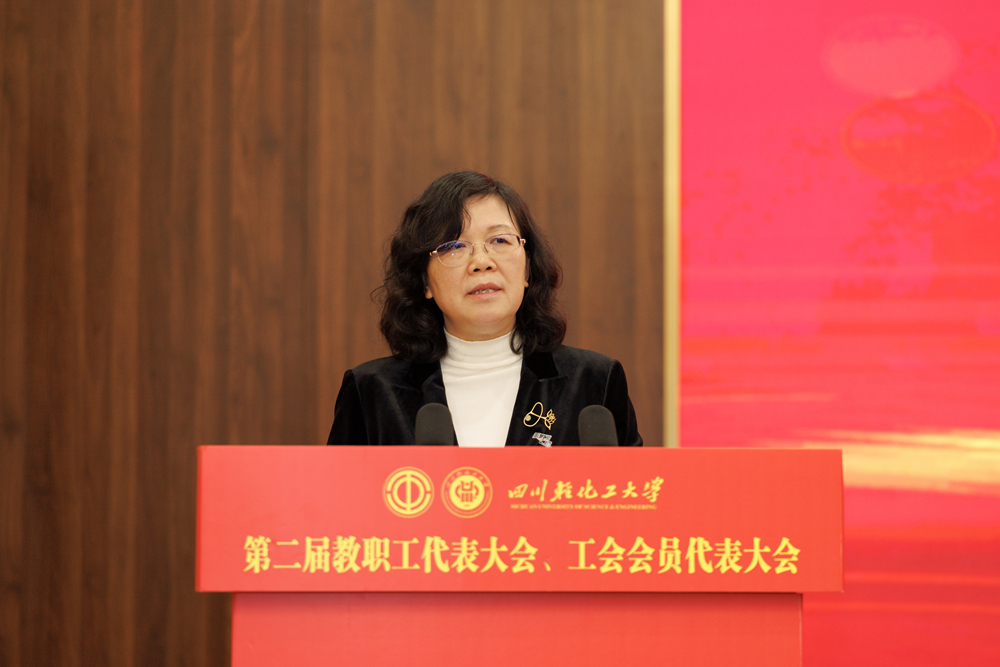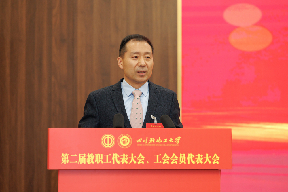 党委副书记、工会主席陈范华作题为《砥砺深耕结硕果 奋楫笃行谱新篇》的工会工作报告,财务处处长毛国育作《四川轻化工大学2020-2024年财务工作报告》。会议还书面审议了《四川轻化工大学2020-2024年法治工作报告》《四川轻化工大学工会经费审查报告》《四川轻化工大学2020-2024年提案工作报告》等。