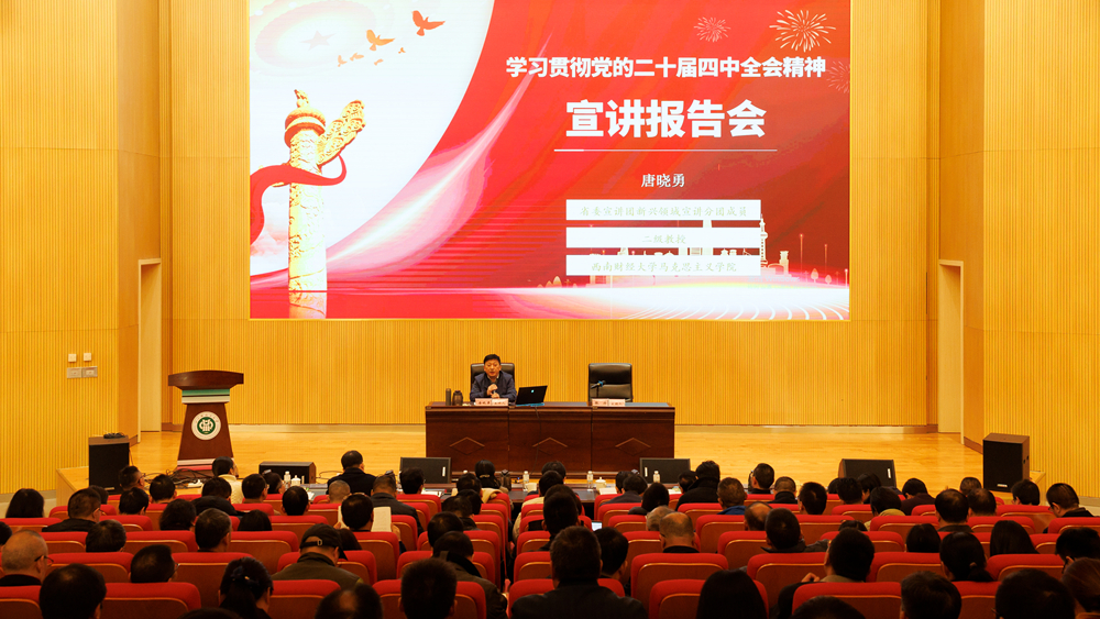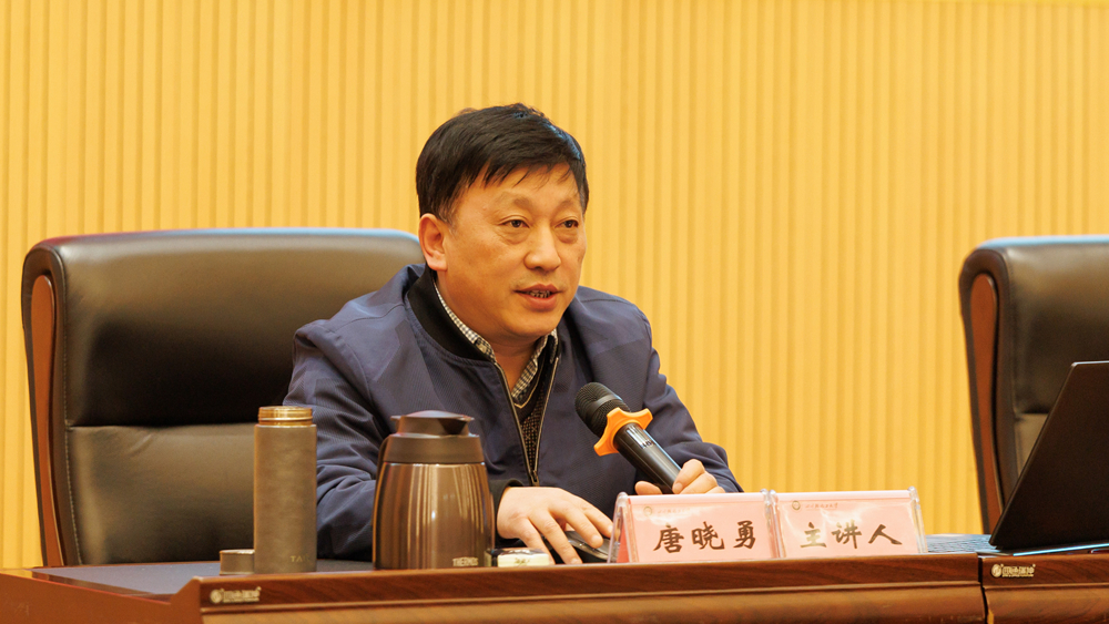 本次学习特邀省委宣讲团成员、西南财经大学马克思主义学院二级教授、博士生导师唐晓勇作专题辅导报告。唐晓勇教授以其深厚的理论素养和丰富的实践经验,重点围绕把握本次全会的基本情况及取得的成果、准确把握“十五五”时期在基本实现社会主义现代化进程中的重要地位、深刻领会“十五五”时期经济社会发展的指导方针和主要目标等方面内容对党的二十届四中全会精神进行了系统阐释,并就省委十二届八次全会精神作了全面、深刻解读。