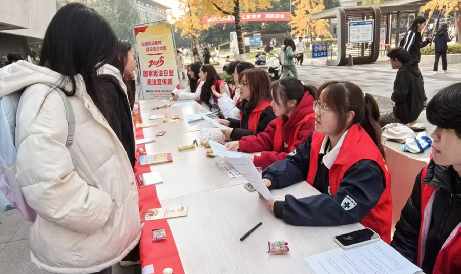 启动仪式后,与会人员参观了自贡市地方立法十周年成果展。现场设置的“普法集市”联合14个市级部门开展法律咨询,并通过宪法“速答盲盒”、法条“连连看”等趣味互动游戏,吸引众多师生参与。同期,我校在李白河校区举办了《宪法精神与青年责任》专题讲座,在宜宾校区通过设立宣传点、走进教室寝室、深入社区等方式,开展签名承诺、有奖问答、微宣讲等系列宣传活动,立体化推动宪法知识普及。