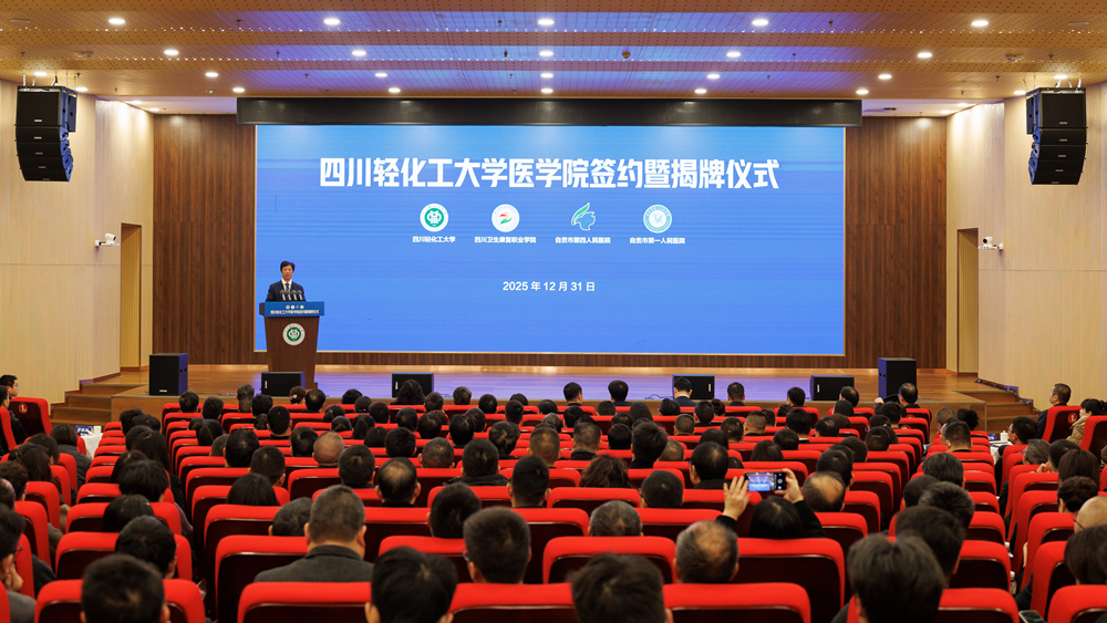 12月31日上午,四川轻化工大学李白河校区学术报告厅内气氛庄重热烈。四川轻化工大学、四川卫生康复职业学院、自贡市第四人民医院、自贡市第一人民医院四方在此举行共建四川轻化工大学医学院签约暨揭牌仪式。这标志着川南渝西区域医学教育与医疗卫生事业融合发展迈入全新阶段,是学校发展进程中具有里程碑意义的重要时刻。