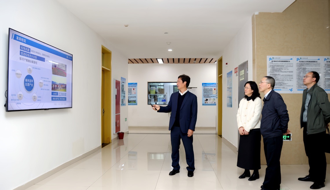 3月6日上午,四川省科技厅政策法规处处长蔡红一行莅临我校宜宾校区,专题调研学校教育科技人才一体化改革推进情况。校长曾英,党委常委、副校长罗惠波陪同调研。