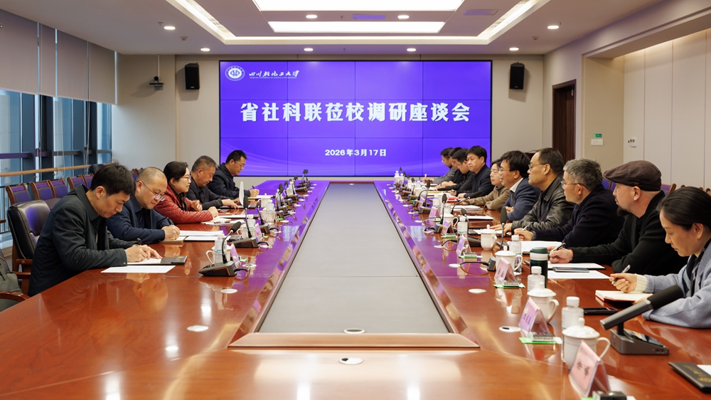 3月17日下午,四川省社会科学界联合会党组书记、副主席屈晓华一行莅临我校李白河校区调研指导,围绕“十五五”哲学社会科学规划编制、社科赋能市县高质量发展行动、国家社科项目申报等三方面征求意见建议。省社科联办公室副主任黄振华随同调研。自贡市政协副主席、民盟自贡市委会主委陈刚,市社科联党组书记佘建平、专职副主席陈永陪同。校党委书记张力,党委副书记陈范华及相关部门、学院负责人参加座谈。
