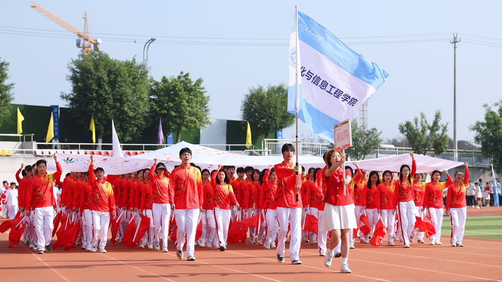 各学院方队依次入场,将运动场化作青春风采的展示舞台。同学们身着统一服装,步伐矫健,口号嘹亮,尽显轻化工人的朝气蓬勃与奋进热血。有的方队手持创意道具,用斑斓色彩描绘运动激情;有的方队踏歌而行,将旋律融入每一个步伐;有的方队以高难度体操动作和整齐划一的队列,展现过硬素质。各方队创意迭出,或挥舞花束,或变换队形,青春的笑脸与飘扬的旗帜交相辉映,将现场气氛一次次推向高潮。