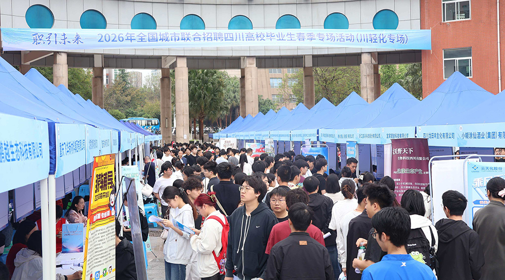 为深入贯彻落实稳就业保就业决策部署,全力促进2026届毕业生高质量充分就业,4月16日至17日,我校联动中共自贡市委组织部、自贡市人力资源和社会保障局、中共宜宾市委人才和大学城工作局、宜宾三江新区管理委员会,分别在汇东校区和宜宾校区举办“蜀汇菁英”四川省高校毕业生就业常设市场(先进材料产业类)暨四川轻化工大学2026届毕业生春季双选会。